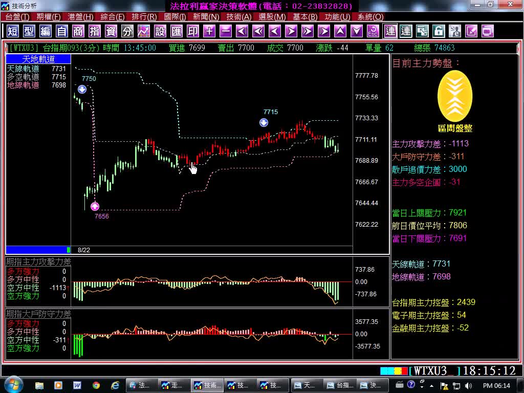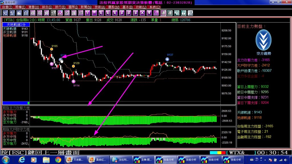 法拉利贏家【天地軌道】與【黃綠紅動能】台指期當沖指標有何不同?轉折性(盤整盤)指標與趨勢性指標有何差異?實例印證影音教學。(1030922)