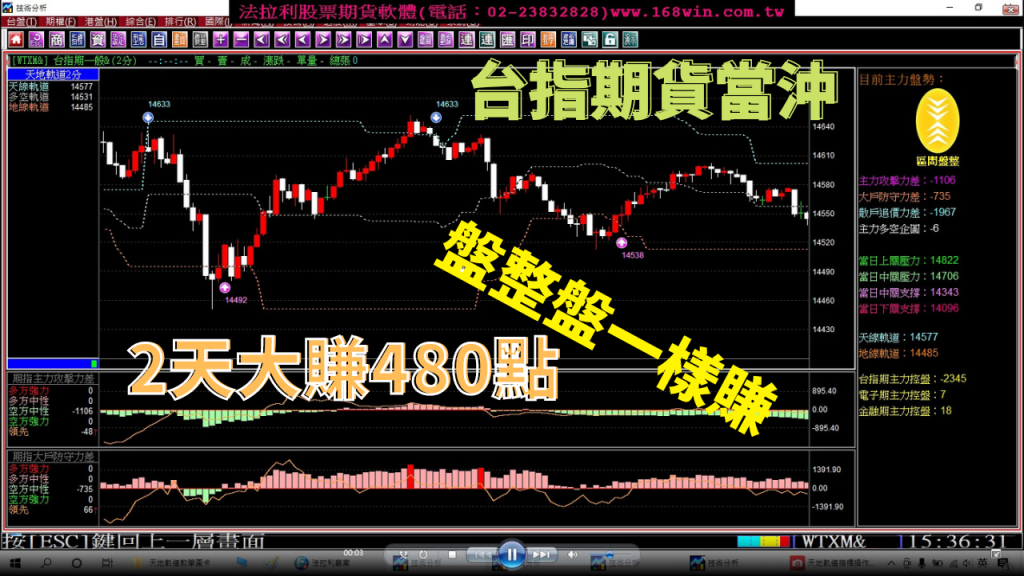 【台指期貨當沖教學】全台唯一盤整盤&趨勢盤均可賺錢的期貨軟體,2月6至9日模擬盤中期貨當沖教學。(1120209)